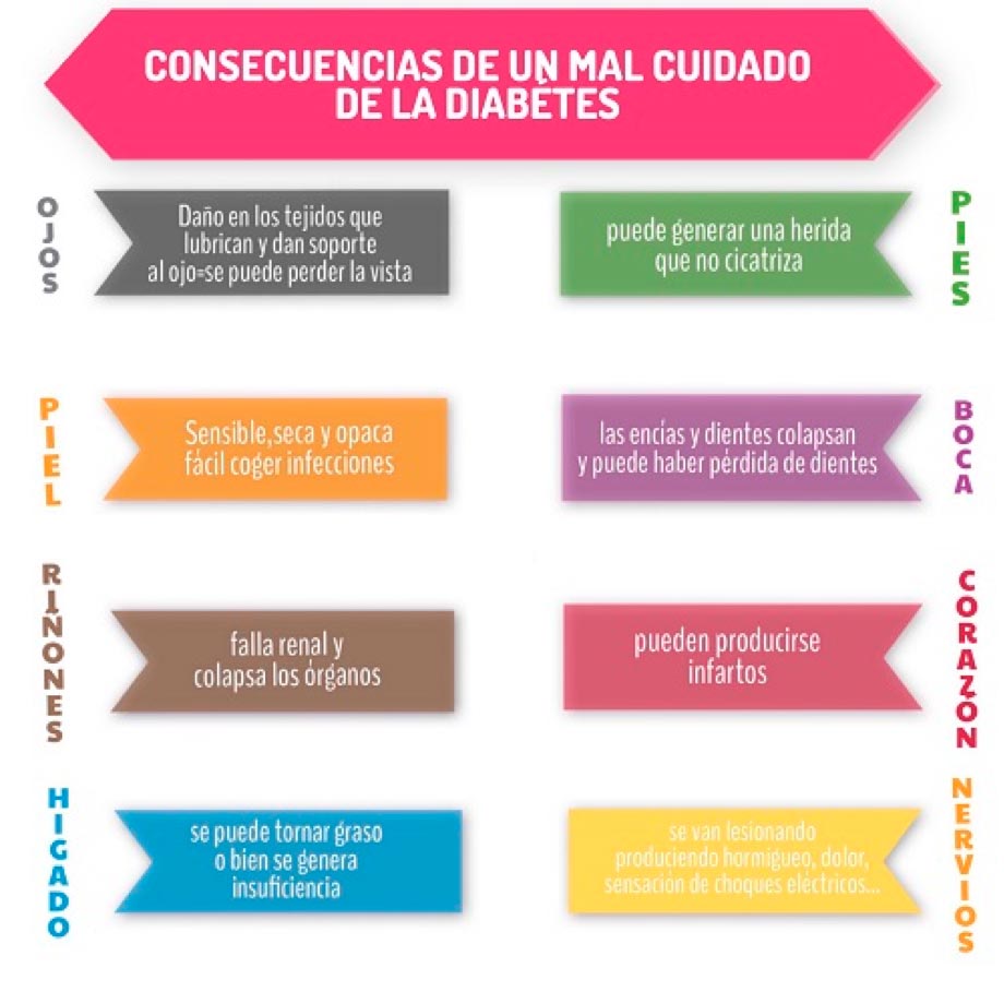 Esta enfermedad no es tan simple como parece. El no cuidarse, puede traer fuertes consecuencias para distintos órganos, pudiendo provocarse varios problemas ala vez o darse independientes uno del otro. Estos son los siguientes: